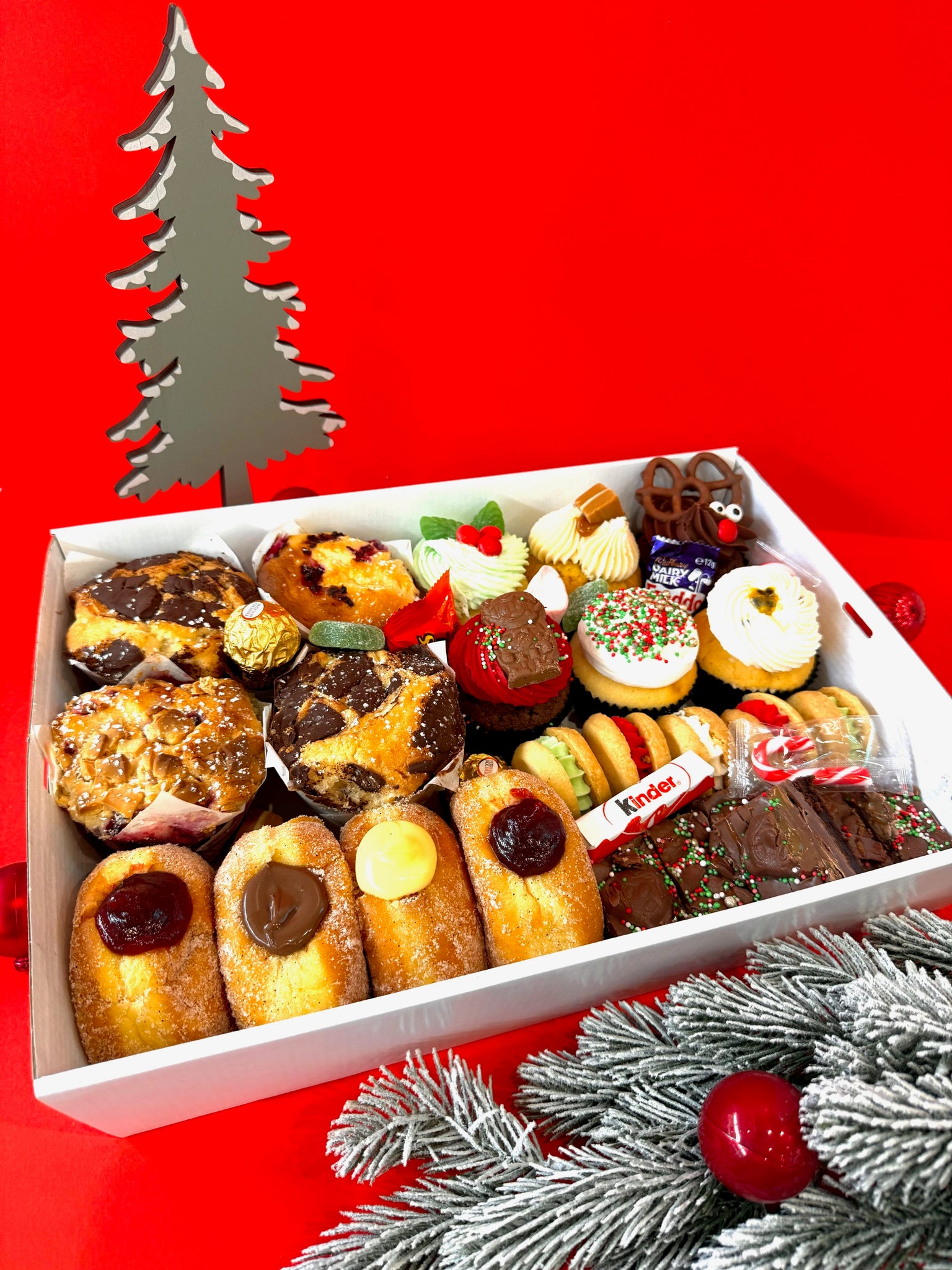 Packaged in a white box with a clear lid and consisting of the following treats: